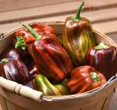 stripe to chocolate and cherry red. This small bell pepper is crisp & sweet.